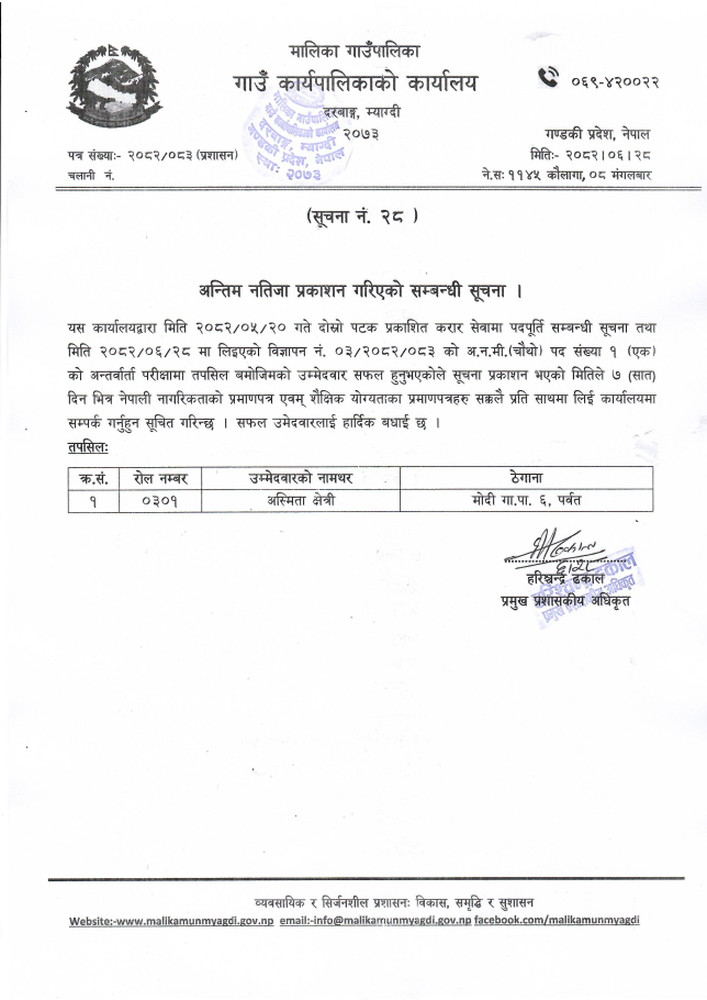 अन्तिम नतिजा प्रकाशन गरिएको सम्बन्धी सूचना ।