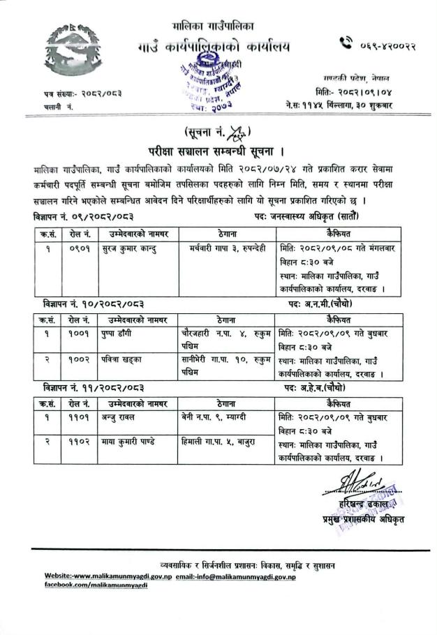 परिक्षा सञ्चालन सम्बन्धी सूचना।।।।