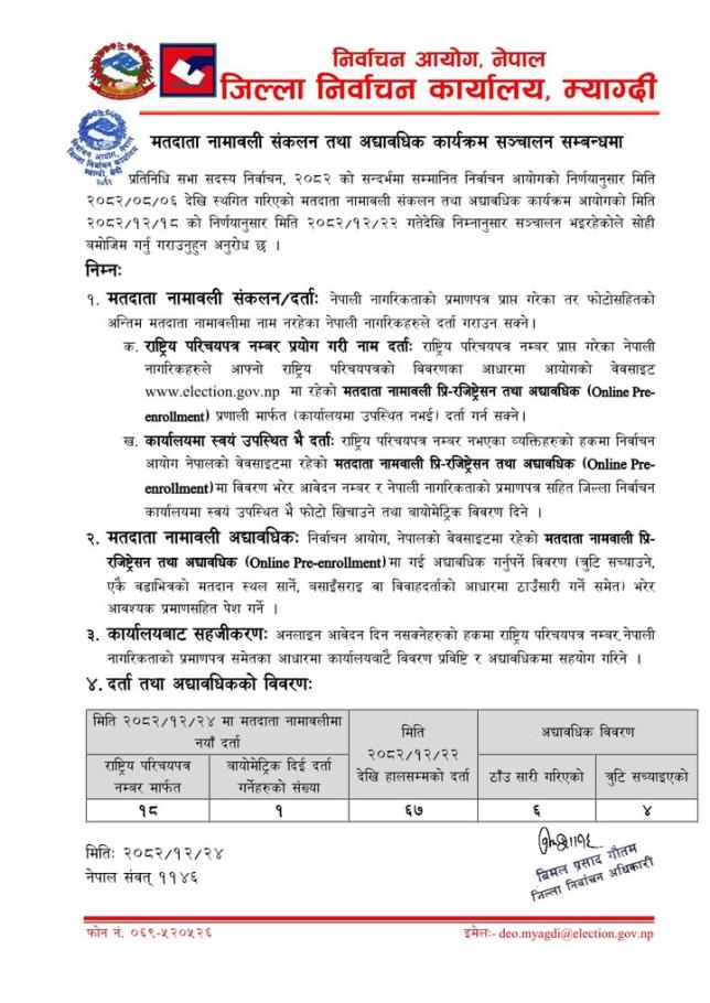 मतदाता नामवली संकलन तथा अद्यावधिक कार्यक्रम सञ्चालन सम्बन्धमा ।