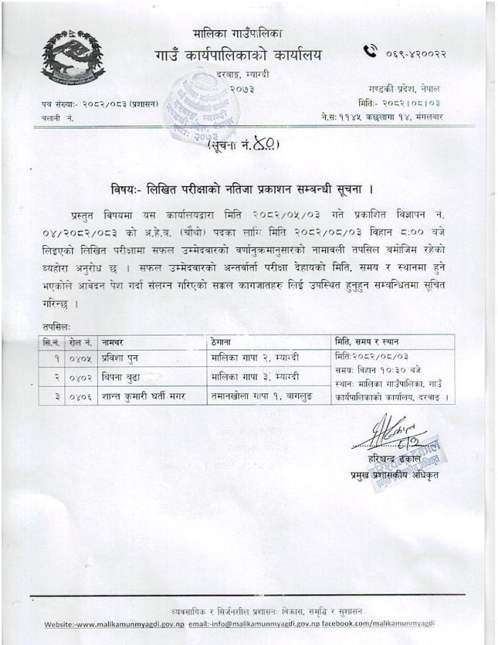 लिखित परीक्षाको नतिजा प्रकाशन सम्बन्धी सूचना ।।