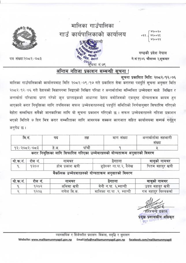 अन्तिम नतिजा प्रकाशन सम्बन्धी सूचना ।।।