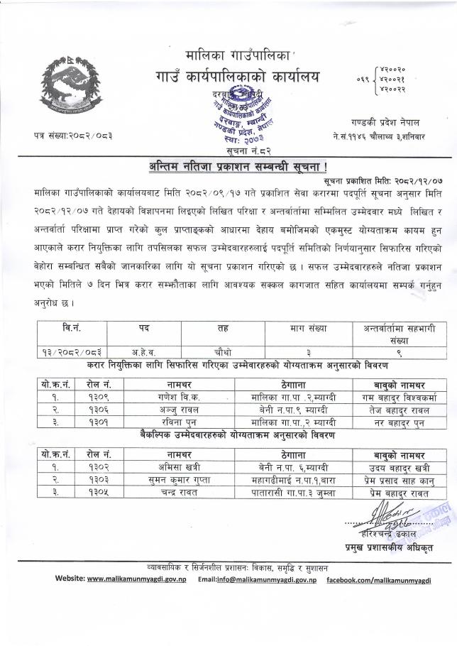 अन्तिम नतिजा प्रकाशन सम्बन्धी सूचना ।।