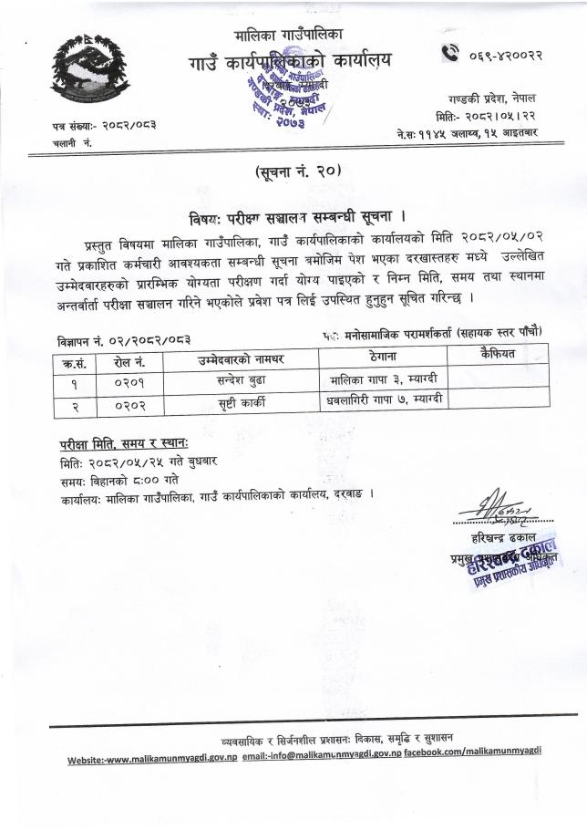 परीक्षा सञ्चालन सम्बन्धी सूचना ।