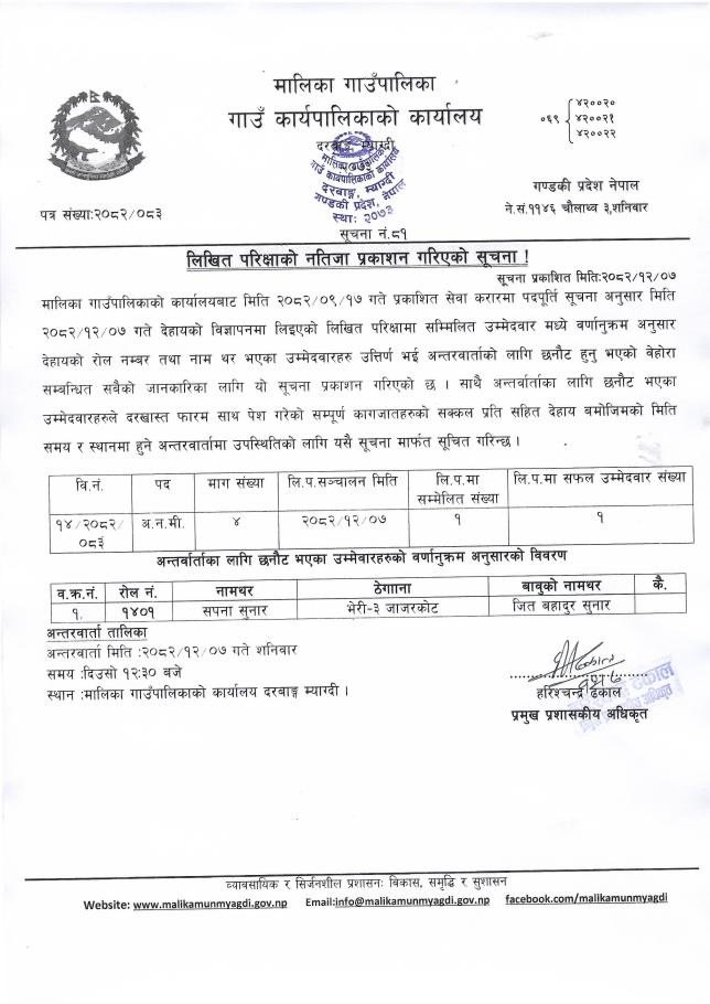 लिखित परिक्षाको नतिजा प्रकाशन गरिएको सूचना ।।