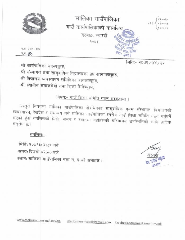 गाउँ शिक्षा समिति गठन सम्बन्धमा ।