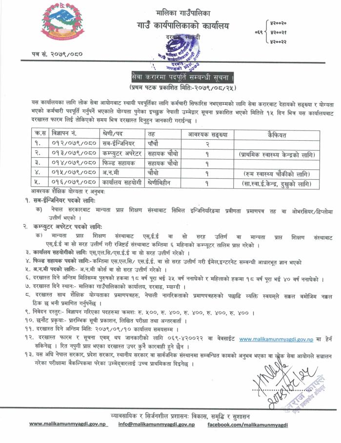 सेवा करारमा पदपुर्ति सम्बन्धी सूचना !!!